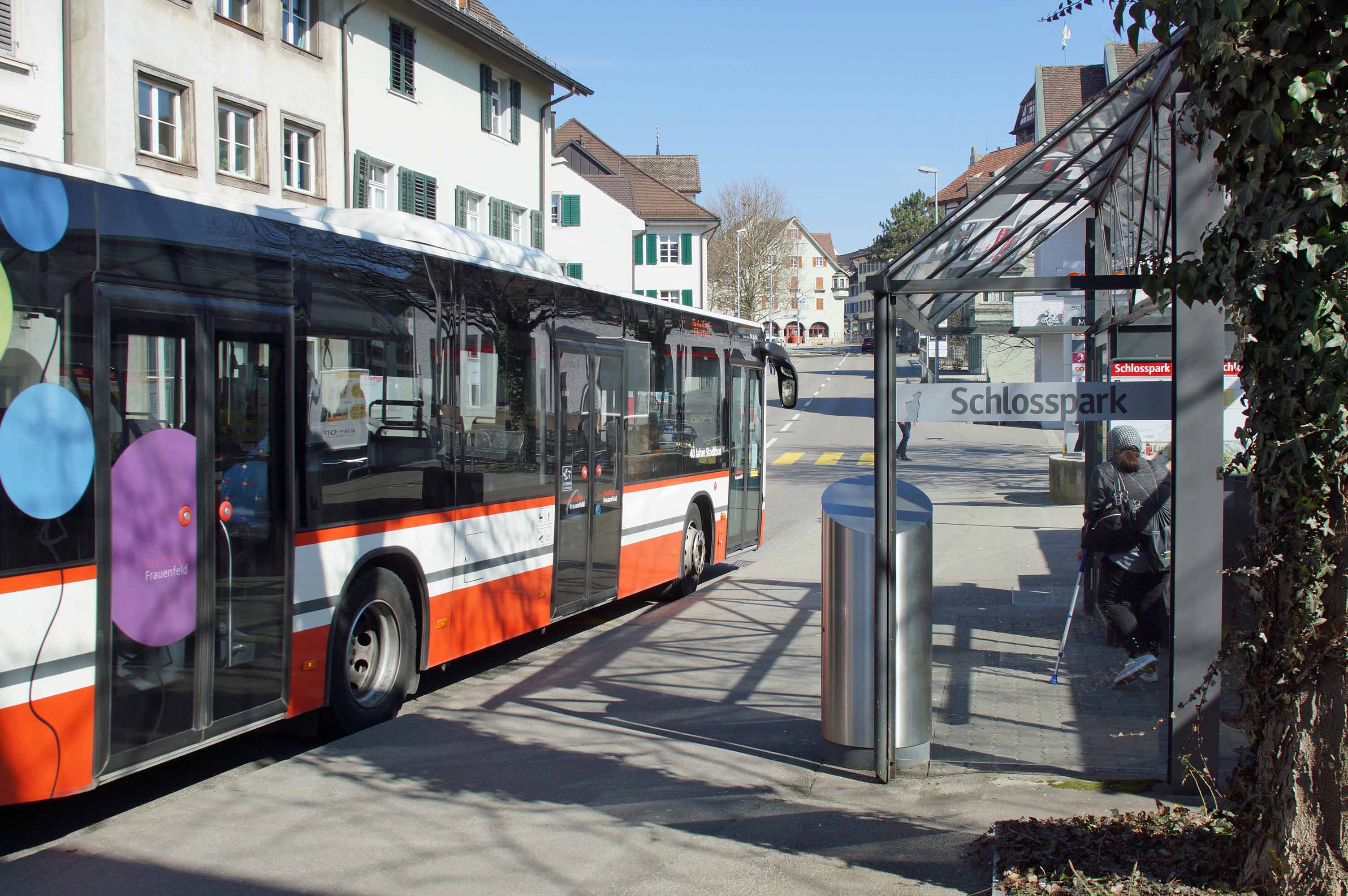 Stadtbushaltestelle Schlosspark (Richtung Bahnhof) in Frauenfeld: